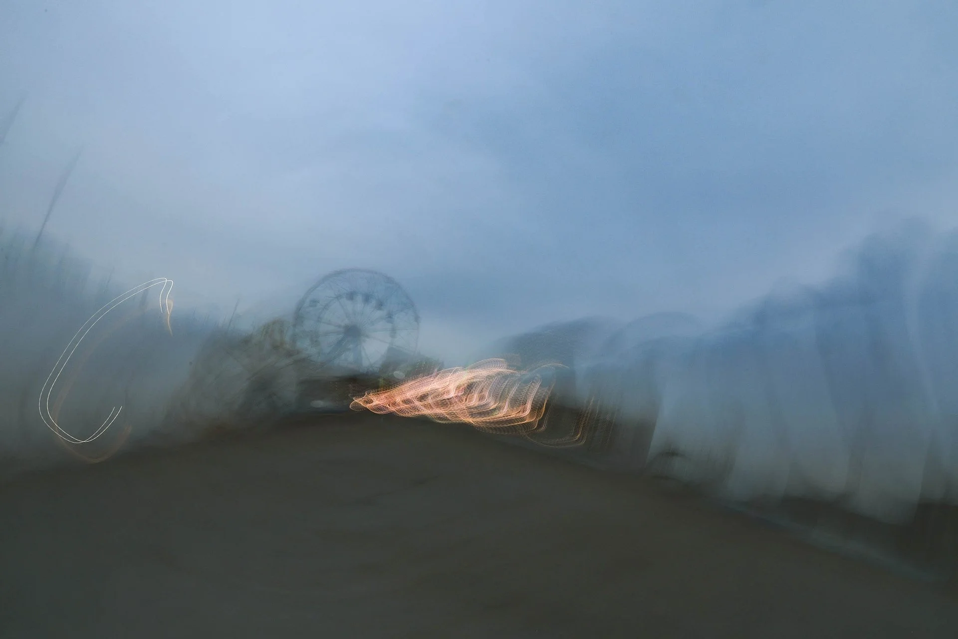 People think of Coney Island as a bright and crowded place. However, when I went to Coney Island to take this picture, it was raining, and the wind was blowing hard, so no one was there. All I could see were stopped rides and the empty beach.