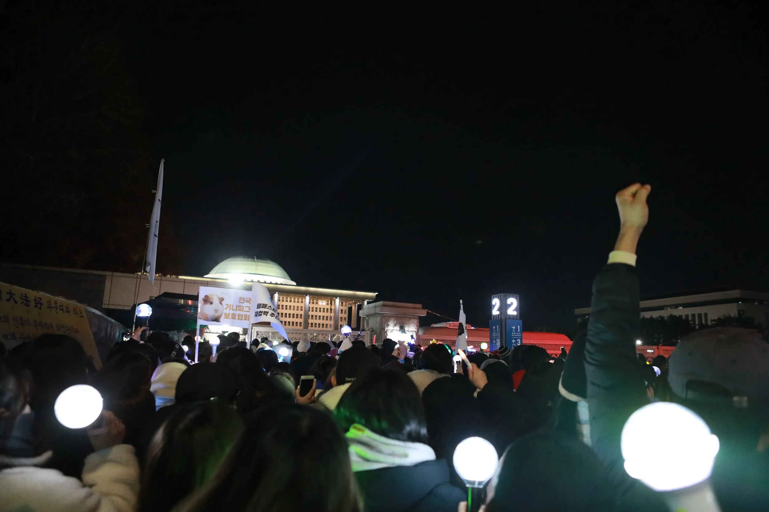 In winter of 2024, after South Korean President Yoon Suk-yeol declared martial law, citizens gathered in the streets of Seoul to demand his resignation.This photo series captures their resistance: banners, chants, phone lights, and giant flags waving in the cold night.Faced with police lines and state control, people continued to speak up. These photos are a visual record of their voices, taken between December of 2024 and February of 2025.